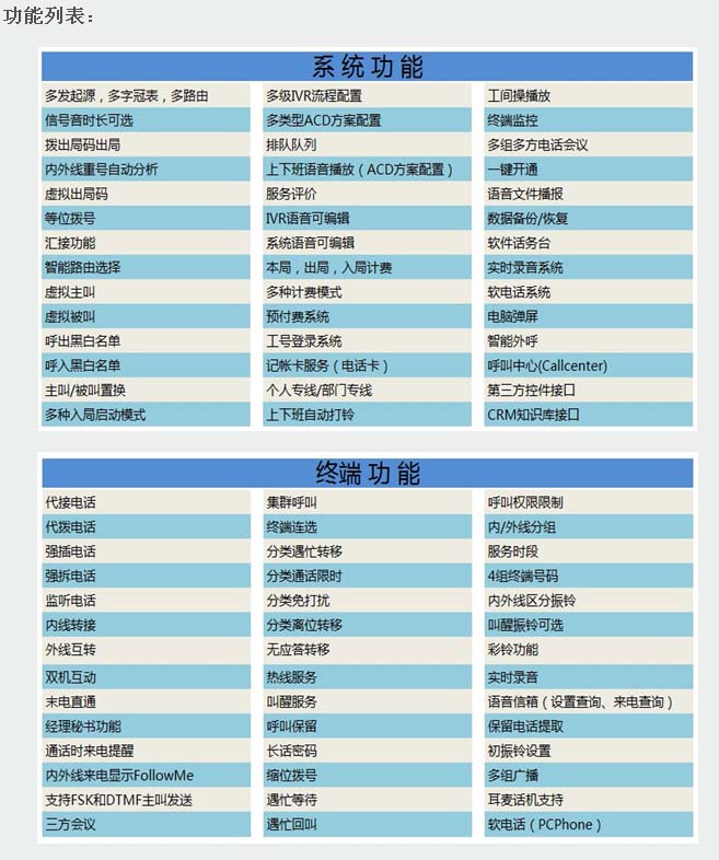 產(chǎn)品配置:8個標準板卡位 最大128端口(E1、FXO和FXS端口板任意配置)