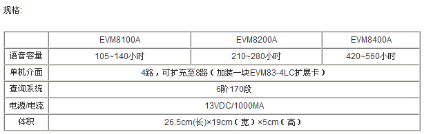 EVM8100A/8200A/8400A采用獨立單體結(jié)構(gòu)設(shè)計,先進(jìn)的快閃記憶體存儲資料及語音,停電狀態(tài)下仍可保存10年以上。安裝方便,操作簡單,可長期穩(wěn)定運轉(zhuǎn)。具備全固態(tài)無磨損、體積小、耗電低等優(yōu)良特點,可全年運轉(zhuǎn),摒除了傳統(tǒng)以PC為架構(gòu)的語音信箱系統(tǒng)運行時死機及散熱所產(chǎn)生題,EVM8100A/8200A/8400A含語音信箱,語音查詢系統(tǒng)多項實用功能。提供企業(yè)以低成本使用高品質(zhì)的語音系統(tǒng)。