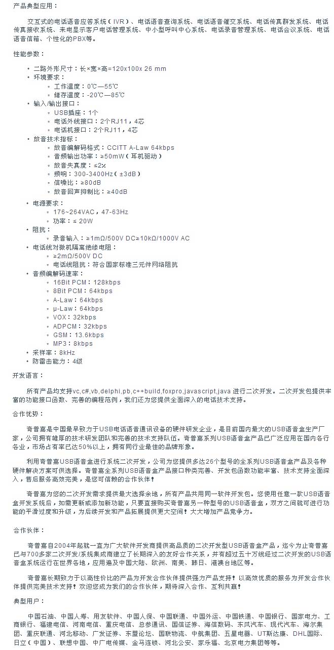 您現(xiàn)在的位置:首頁(yè) >> 電話錄音>錄音盒>奇普嘉>USB電話語(yǔ)音盒>二路USB電話語(yǔ)音盒>