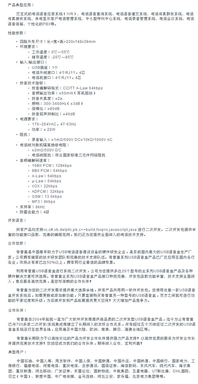 您現(xiàn)在的位置:首頁(yè) >> 電話錄音>錄音盒>奇普嘉>USB電話語(yǔ)音盒>四路USB電話語(yǔ)音盒>