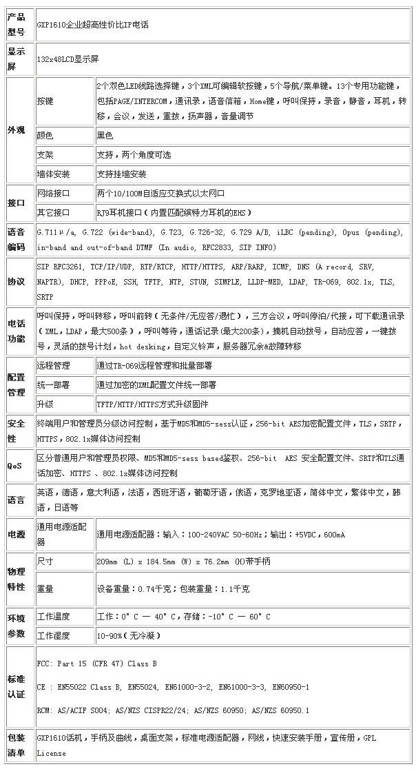 GXP1610是一款功能豐富、簡單易用的基礎(chǔ)級IP電話,適用于中小型企業(yè)和SOHO辦公通信。這款基于Linux平臺的話機支持1個SIP賬號,2條通話線路和3個可自定義功能的軟按鍵。132x48像素LCD顯示屏可以清晰明了的顯示關(guān)鍵信息。GXP1610還支持兩個10/100M交換式網(wǎng)口,支持多種語言顯示,匹配繽特力耳機的EHS無線耳機適配器,呼叫等待以及三方會議等豐富的附加功能。GXP1610擁有超高的產(chǎn)品質(zhì)量和友好的交互方式,是最值得信賴的基礎(chǔ)級辦公電話。