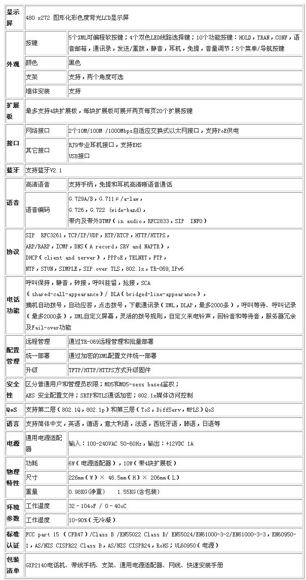 GXP2140是一款集時(shí)尚和科技為一體的智能高端IP電話,采用優(yōu)雅大氣的外觀設(shè)計(jì),標(biāo)配4.3寸TFT真彩LCD屏,支持4線路賬號(hào), 5個(gè)可編程軟按鍵,雙千兆網(wǎng)口,USB數(shù)據(jù)接口,內(nèi)置集成POE和藍(lán)牙、EHS無繩耳麥適配器,支持五方會(huì)議及豐富的SIP/Web集成業(yè)務(wù)。GXP2140具有卓越的高清語音品質(zhì),豐富領(lǐng)先的電話系統(tǒng)功能,并提供用戶個(gè)性化的信息定制和企業(yè)ICT集成接口,支持外接4塊液晶擴(kuò)展板(共160個(gè)雙色BLF按鍵),支持自動(dòng)部署和先進(jìn)的安全保護(hù)機(jī)制,廣泛的兼容業(yè)界主流IMS/NGN/IPPBX/IPCC平臺(tái)。
