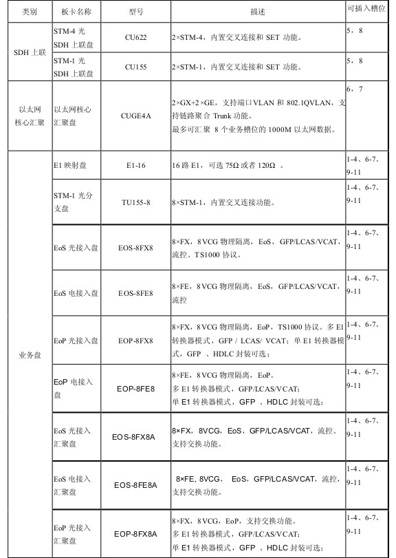 9.支持下行STM-1光分支盤,E1,EoS,EoP等多種支路業(yè)務(wù)盤