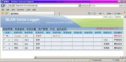 產(chǎn)品詳細(xì)介紹: 奇普嘉(QUANOVA)研發(fā)的真正網(wǎng)絡(luò)架構(gòu)的數(shù)字錄音系統(tǒng),對(duì)于錄音產(chǎn)品具有劃時(shí)代的意義。因?yàn)樗龜[脫了對(duì)計(jì)算機(jī)的依賴和束縛,錄音數(shù)據(jù)是通過網(wǎng)絡(luò)(TCP/IP協(xié)議)實(shí)時(shí)傳輸?shù)接?jì)算機(jī)硬盤。完全不受限于計(jì)算機(jī)的硬件。簡(jiǎn)單地說,只要錄音服務(wù)器(安裝錄音軟件的那一臺(tái)電腦)能正常使用并且連入了網(wǎng)絡(luò)(LAN/WAN),即可實(shí)現(xiàn)錄音。 由于采用獨(dú)有的內(nèi)核軟件及基于DSP的語音壓縮技術(shù),保證了采集的聲音絲毫不失真,先進(jìn)的AGC技術(shù)可以實(shí)現(xiàn)將較小一端的聲音自動(dòng)放大后再保存下來??蛻舳瞬挥冒惭b任何軟件就可以進(jìn)行錄音查詢和實(shí)時(shí)監(jiān)聽。聯(lián)網(wǎng)的錄音服務(wù)器與聯(lián)網(wǎng)的QLAN錄音盒可以離得很遠(yuǎn)很遠(yuǎn)…… 此外,我們不斷地積極采納客戶的種種良策,提供錄音狀態(tài)、來電號(hào)碼、撥出號(hào)碼、通話開始結(jié)束時(shí)間、通話長(zhǎng)度等等信息,所有可能需要的數(shù)據(jù),我們幾乎一應(yīng)俱全。 硬件界面: