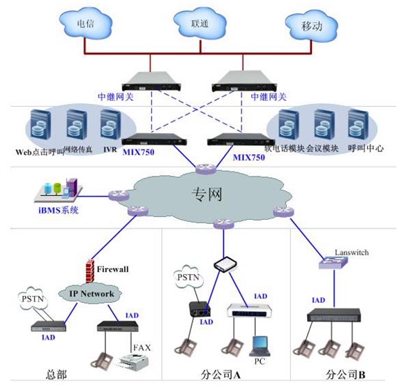 產(chǎn)品概述 MIX750采用嵌入式的操作系統(tǒng),是下一代網(wǎng)絡(luò)的核心部件,承載業(yè)務(wù)豐富。MIX750完成呼叫控制、注冊認(rèn)證、資源控制、SIP代理等功能,繼承了傳統(tǒng)電信系統(tǒng)的管理理念的同時,采用IP網(wǎng)絡(luò)靈活,開放,簡單的特點(diǎn),支持雙機(jī)備份的機(jī)制,支持權(quán)限控制和多種方式的遠(yuǎn)程管理,設(shè)備運(yùn)行穩(wěn)定可靠, 是一款為企事業(yè)量身定做的軟交換設(shè)備。 ? 終端兼容性強(qiáng) 支持MGCP、SIP的IAD接入, 支持與多種標(biāo)準(zhǔn)的SIP終端接入 ? 協(xié)議支持廣泛 支持SIP、H.323、MGCP協(xié)議等,支持RTP/RTCP協(xié)議 ? 業(yè)務(wù)支持豐富 支持彩鈴CRBT(Coloring Ring Back Tone), 支持內(nèi)部號碼直撥,支持來電顯示、呼叫轉(zhuǎn)移、呼叫輪選、立即熱線、端口代撥、縮位撥號等功能 ? 支持多種呼叫方式 支持PC to PC、PC to Phone、Phone to PC、Phone to Phone的呼叫方式 ? 呼叫路由管理設(shè)置功能強(qiáng) 可依據(jù)主叫、被叫、時段等對呼叫進(jìn)行調(diào)度 ? 多種卡業(yè)務(wù)的支持 支持主叫卡、直撥卡、回?fù)芸I(yè)務(wù) ? IPPBX業(yè)務(wù)功能支持 包括虛擬隊(duì)列、IVR、總機(jī) (值班模式、分時總機(jī))、個性化提示語音、呼叫保持、呼叫轉(zhuǎn)接等功能 ? 支持Web800業(yè)務(wù) 一種基于Web的企業(yè)與用戶的新型溝通方式,用戶使用耳機(jī), 通過Web直接呼叫企業(yè)坐席 ? 支持軟電話業(yè)務(wù) 可以通過加載軟電話模塊,實(shí)現(xiàn)軟電話的應(yīng)用, 方便出差和其他需要的人員的使用 ? 全面的安全機(jī)制 對信令及語音報文可以選擇加密, 用戶對終端和中繼采用密鑰認(rèn)證機(jī)制,防止設(shè)備的盜鏈, 防止通過偵聽報文的方式泄密 ? 支持私網(wǎng)下的NAT穿透 支持私網(wǎng)下的語音穿透, 對于處于終端的設(shè)備,在進(jìn)行通信和信令交換的時候可以實(shí)現(xiàn)穿透, 保證通信的效果。 ? 支持遠(yuǎn)程自動升級 支持對軟交換設(shè)備的遠(yuǎn)程自動升級, 支持通過軟交換設(shè)備對注冊到該平臺的設(shè)備有選擇的實(shí)施批量自動升級, 從而方便客戶的使用。 產(chǎn)品規(guī)格 產(chǎn)品型號 | MIX750 | 特性指標(biāo) | 操作系統(tǒng) | 嵌入式軟交換一體機(jī) | 語音編解碼支持 | G.711、G.723、G.729A/B、iLBC | 容量 | 系統(tǒng)最大并發(fā)路數(shù):1500線 系統(tǒng)注冊線:100線/200線/500線/1000線/2000線(可根據(jù)要求擴(kuò)容) | 網(wǎng)絡(luò)接口 | 2*10/100M以太網(wǎng)口 | 控制口 | RS-232串口, 9600bps | IPPBX功能 | 隊(duì)列 總機(jī) 個性化提示音 呼叫等待 呼叫保持 呼叫代答 | DTMF參數(shù) | RFC2833、INBAND、 R RC2833、INBAND、SIP Info | 物理特性 | 尺寸 | 435mm×500mm×44mm | 電源輸入 | 85~265V AC, 50~60Hz, 1.2A | 功率(單位:W) | 30 | 工作溫度(單位:℃) | 0~40 | 存儲溫度(單位:℃) | -20~80 | 工作濕度 | 10%~90% | 重量(單位:kg) | 6.2 |