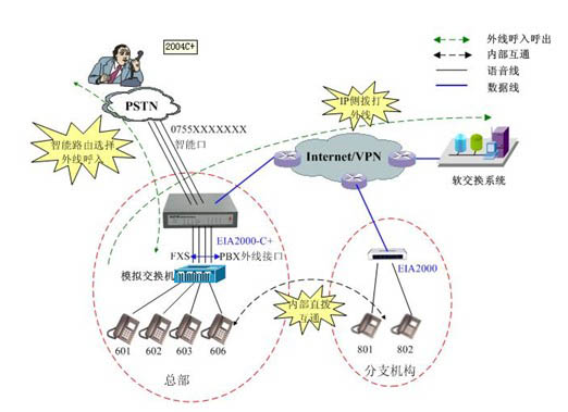 產(chǎn)品概述 終端EIA2004C+接入設(shè)備、提供4個(gè)Link口接PSNT線路, 4個(gè)FXS接普通話機(jī), 可享受VOIP的低廉的資費(fèi), 優(yōu)質(zhì)語(yǔ)音,支持?jǐn)嗑W(wǎng)斷電不影響正常通話業(yè)務(wù), 通過(guò)PSTN出局自動(dòng)增加" IP "接入號(hào), 同時(shí)提供1個(gè)WAN口,1個(gè)LAN口,允許企業(yè)、辦公室或家庭中多臺(tái)PC共享1條ADSL線路、一個(gè)Internet ISP賬戶上網(wǎng),內(nèi)置的1個(gè)交換端口方便您上網(wǎng)服務(wù)。 EIA2004C+提供多方面的管理功能, 可對(duì)DHCP服務(wù)器、DMZ主機(jī)、靜態(tài)路由表、DNS、Tunnel( 隧道)端口映射等進(jìn)行管理, 同時(shí)提供全中文Web配置界面,用戶界面友好, 配置簡(jiǎn)單易用, 支持軟件升級(jí), 是一款能讓您同時(shí)體驗(yàn)語(yǔ)音和上網(wǎng)沖浪的首選產(chǎn)品。 產(chǎn)品特點(diǎn) ? 支持T.38實(shí)時(shí)傳真,可以連續(xù)傳多頁(yè)紙,傳真清晰度高。 ? 支持主叫號(hào)碼、拍叉(用#代替)、呼叫轉(zhuǎn)移、熱線電話、FXS端口權(quán)限等多種實(shí)用的電話業(yè)務(wù)。 ? 話音質(zhì)量好,可以與普通PSTN話音相媲美.支持標(biāo)準(zhǔn)編碼如G.711、G.729A、G.723.1支持動(dòng)態(tài)抖動(dòng)緩 沖管理、回波抵消包補(bǔ)償技術(shù)、語(yǔ)音激活檢測(cè)技術(shù)VAD和舒適背景音生成(CNG)。 ? 支持802.1q和802.1p, 可以設(shè)置語(yǔ)音數(shù)據(jù)流的業(yè)務(wù)優(yōu)先級(jí)和VLAN標(biāo)簽, 大幅提高業(yè)務(wù)的保護(hù)能力。 ? 內(nèi)置智能語(yǔ)音評(píng)判專家,在網(wǎng)絡(luò)狀況變差導(dǎo)致VoIP語(yǔ)音質(zhì)量下降時(shí),能自動(dòng)把呼叫路由到企業(yè)原PSTN 線路。 ? 撥號(hào)規(guī)則簡(jiǎn)單靈活,與企業(yè)原有的傳統(tǒng)PBX電話互通性好,完全繼承傳統(tǒng)電話使用習(xí)慣。 ? 支持對(duì)VoIP與PSTN的呼叫比率進(jìn)行控制,平衡VoIP運(yùn)營(yíng)商與企業(yè)原PSTN運(yùn)營(yíng)商之間的利益沖突。 ? 可以自動(dòng)對(duì)長(zhǎng)途呼叫添加類似17909的IP接入號(hào)。 ? 支持PPP/PPPOE,DHCP Client, PPPoE中斷后能自動(dòng)重?fù)堋?/FONT> ? 提供WEB圖形配置界面, 對(duì)設(shè)備進(jìn)行本地配置, 操作管理、配置方法都非常簡(jiǎn)單。 ? 通過(guò)串口或Telnet方式, 可以對(duì)設(shè)備進(jìn)行本地或遠(yuǎn)程監(jiān)控、診斷。 ? 支持軟件自動(dòng)升級(jí)功能. EIA設(shè)備升級(jí)軟件時(shí), 不影響用戶的正常業(yè)務(wù)。 產(chǎn)品規(guī)格 尺寸(長(zhǎng)×寬×高,單位:mm) | 222×215×36 | 重量(單位:kg) | 1.2 | 工作溫度(單位:℃) | 0~40 | 存儲(chǔ)溫度(單位:℃) | -20~70 | 工作濕度 | 10%~90% | 功率(單位:W) | 10 | 外置電源適配器 | 支持 | 電源輸入 | 220VAC/50Hz/0.5A | 外置電源輸出 | 12VDC/1.0A | 逃生FXO端口數(shù)目 | 4 | 產(chǎn)品規(guī)格 | 4S | 傳真支持 | 支持 | FXS反極信號(hào)發(fā)送 | 支持 | 斷電逃生 | 支持 | 電話接口雷擊保護(hù) | 10/700,4000V | 網(wǎng)絡(luò)接口 | 10/100BASE-TX | WAN口數(shù)目 | 1 | LAN口數(shù)目 | 1 |