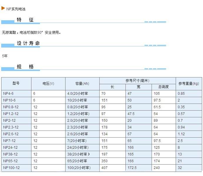 NP系列電池